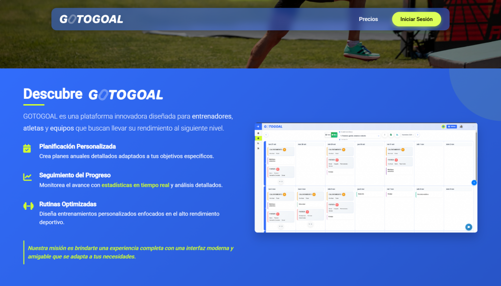 GoToGoal is a training management platform created by decathletes Jorge Davila and Pablo Roelas. The platform allows coaches to plan and analyse athlete performance, while athletes can track their training and progress.